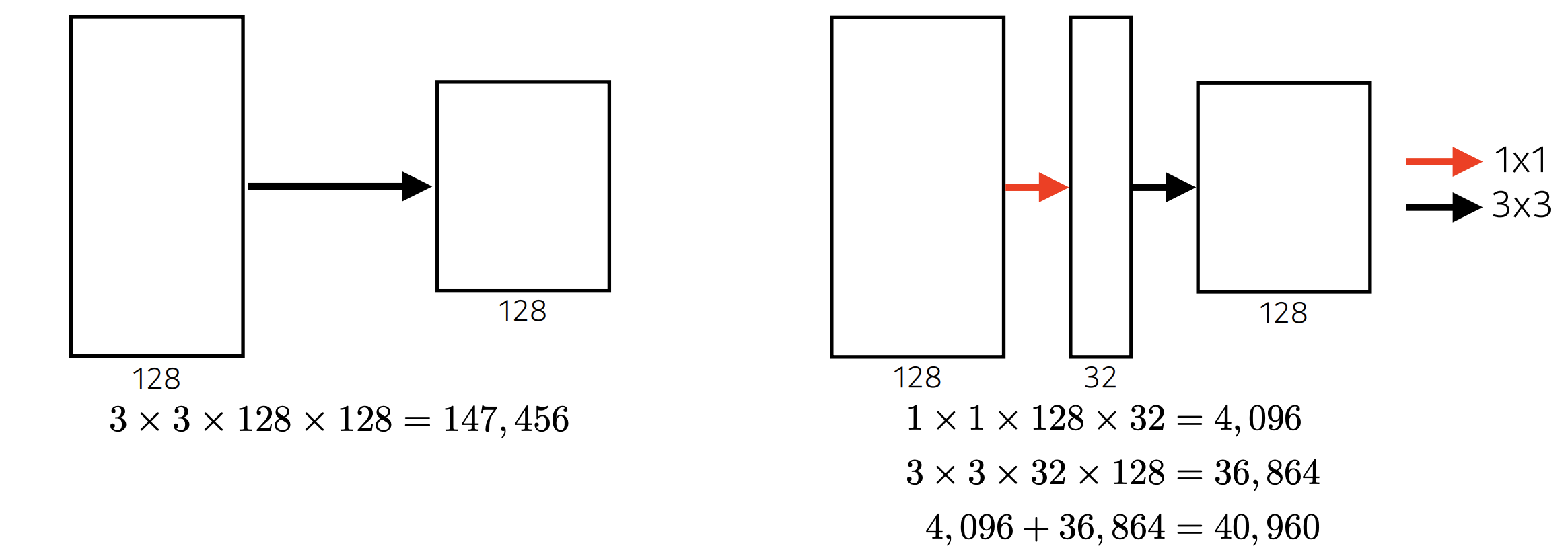 - 5x5 필터를 한 번 적용하는 것보다 2번의 3x3 필터를 적용하는 것이 파라미터 수가 더 적다.