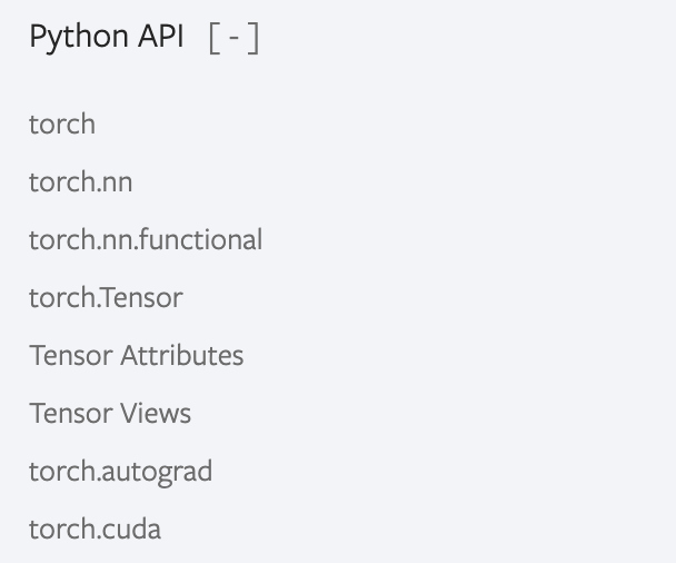 나는 Python에서 torch를 사용할 것이기 때문에 Python API를 눌러서 확인해보았다.